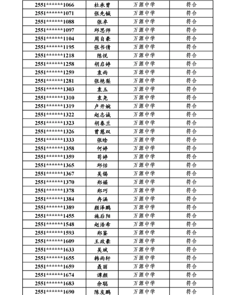 各相关中学、有关考生:根据2025年普通高校招生工作安排,我市对申报农村订单定向医学生免费培养计划的考生进行了资格审查。经公安部门对考生相关信息核查,符合报考资格的考生共计80人(其中,万源中学62人,万源市第三中学10人,异地就读回万源报考考生8人)。现将资格审查合格考生名单予以公示,具体事项如下:一、公示内容2025年普通高考农村订单定向医学生计划资格审查合格考生名单二、公示时间2025年7月7日至2025年7月11日(共5个工作日)三、公示渠道“万源招考”微信公众号,各相关中学校内公示栏。四、异议受理如有异议,请于2025年7月11日17:00前实名向万源市招考办反映。联系电话:0818-8622162联系地址:万源市教育局招生考试办公室