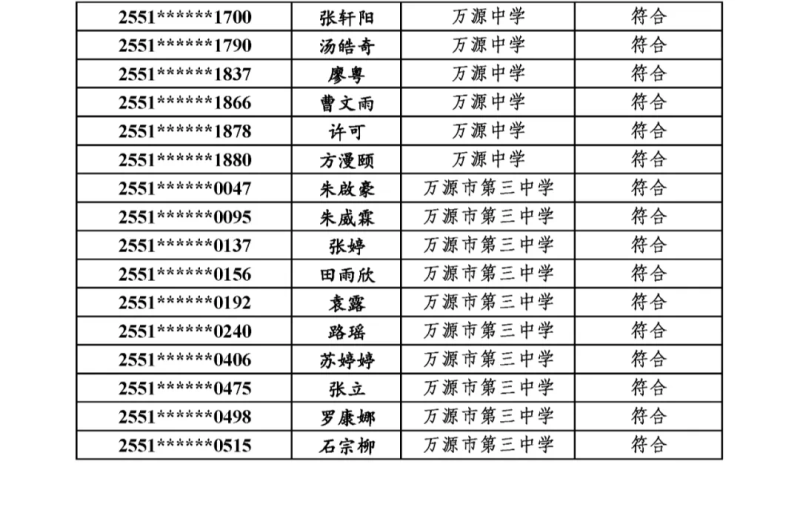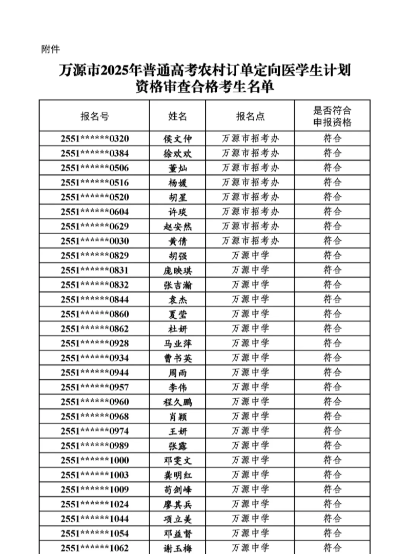 附件:万源市2025年普通高考农村订单定向医学生计划资格审查合格考生名单